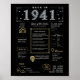 Step back into 1941 with our captivating digital poster, packed with historical titbits, noteworthy events, and intriguing stories from yesteryear. Featuring elegant gold and silver touches set against a bold black background, adorned with unique symbols and stylish text, this poster exudes classic charm. Whether it's sparking conversations at gatherings or simply displayed as a cherished keepsake, it brings a nostalgic vibe to any space.