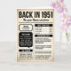 Celebrate a birthday with a nostalgic look back at 1951 — the year it all began. This personalized birthday card features fun facts and highlights from 1951, including '90s slang, '90s fashion trends, and cost-of-living facts, all presented in a clean, timeless design.