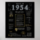 Enter 1954 with our captivating digital birthday poster, brimming with historical facts, noteworthy events, and intriguing stories from the past. Adorned with elegant gold and silver details against a bold black background, featuring unique symbols and stylish text, this birthday poster exudes timeless charm. Whether sparking conversations at birthday gatherings or cherished as a keepsake, it evokes nostalgic memories.