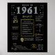Step into 1961 with our captivating digital birthday poster, brimming with historical facts, noteworthy events, and intriguing stories from the past. Adorned with elegant gold and silver details set against a bold black background, featuring unique symbols and stylish text, this birthday poster exudes timeless charm. Whether sparking conversations at birthday gatherings or cherished as a keepsake, it evokes nostalgic memories.