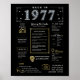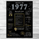 Step into 1977 with our captivating digital birthday poster, brimming with historical facts, significant events, and intriguing narratives from the past. Adorned with elegant gold and silver accents against a striking black backdrop, embellished with unique symbols and stylish text, this meticulously crafted birthday poster exudes timeless allure. Whether displayed prominently at birthday gatherings or cherished as a keepsake, it promises to ignite conversations and stir fond memories.