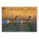 A pair of Canadian Geese are on the move. The goose following the leader seems to have something to say.