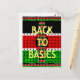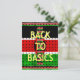 The design features the flag's colours—black, red, and green—in a brick-like, textured pattern, giving the piece a tactile, handmade feel. The iconic Maasai shield and spears are centred over the flag, while the bold, simple yellow text "BACK TO BASICS" emphasizes the importance of culture, unity, and national foundation. The entire motif is framed by a decorative border of miniature Kenyan flags, completing this proud, patriotic look.