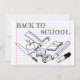 Back to School motif in childish doodle with school utensils on writing pad background.
