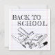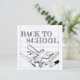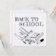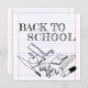 Back to School motif in childish doodle with school utensils on writing pad background.