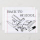Back to School motif in childish doodle with school utensils on writing pad background.