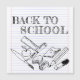 Back to School motif in childish doodle with school utensils on writing pad background.