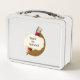 This is a standard metal lunchbox that appears to work just fine. We designed this box ourselves with an uploaded photo and custom text on the front and back. It looks absolutely beautiful except the front of the lunchbox is not centered like it shows in the photo. The print borders don't align with the inset flat part of the box where the preview photo online showed it perfectly centered in there. The back looks nice and centered though.