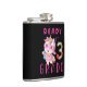 The flask itself is fine. It’s a cheap flask, obviously bought in bulk, however am prepared to overlook that. Given that it is a personalized item, I would have liked to have seen gift boxing instead of the generic packaging. Terrible printing, and/or quality. It’s a cheap, tacky vinyl. It is not cut straight and is also applied in a way that it is overhanging the bottom, causing the glue to catch on items and it will eventually roll and tear, damaging the wrap.