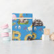 Capital letters A B C D E F G H I J...house pets and school tools against a blue sky repeat pattern