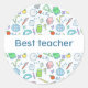 Back to school: "Best teacher" sticker (editable) with seamless pattern