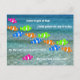 Back to school, clownfish postcards. Swimming fish on the front with four lines of custom text to add reminders and / or information for students and parents. Example: school start time, what to bring, classroom number. Include a photo and a note from the teacher on the back.