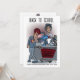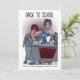 A card with a funny cartoon about back-to-school shopping supplies. Background and text can be personalised. Original artwork by DB Cartoons.