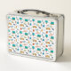 This is a standard metal lunchbox that appears to work just fine. We designed this box ourselves with an uploaded photo and custom text on the front and back. It looks absolutely beautiful except the front of the lunchbox is not centered like it shows in the photo. The print borders don't align with the inset flat part of the box where the preview photo online showed it perfectly centered in there. The back looks nice and centered though.