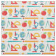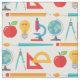 A colourful school pattern featuring pencil, paint brush, apple, globe of the world, lightbulb, microscope and more.