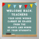 Inspirational "welcome back" for school teachers featuring chalkboard and quote.