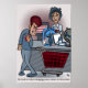 A poster with a funny cartoon about back-to-school shopping supplies. Background and text can be personalised. Original artwork by DB Cartoons.