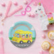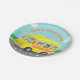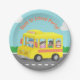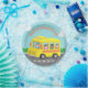 A yellow school bus with happy and smiling kids on board. The kids are delighted to be going to school to learn and catch up with friends! These paper plates are perfect for a back to school party or a bus themed party! Personalise with your party message.