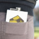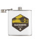 The flask itself is fine. It’s a cheap flask, obviously bought in bulk, however am prepared to overlook that. Given that it is a personalized item, I would have liked to have seen gift boxing instead of the generic packaging. Terrible printing, and/or quality. It’s a cheap, tacky vinyl. It is not cut straight and is also applied in a way that it is overhanging the bottom, causing the glue to catch on items and it will eventually roll and tear, damaging the wrap.