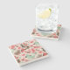 The coasters are gorgeous, a quality feel and heavy weight. They look like a precious archeological find. A rustic stone juxtaposed with a modern floral black and white print. I like the way the print goes slightly imperfect on the cut stone edges giving them a kind-of natural beauty.