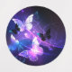 Black background with glowing night butterflies. Night butterflies. Design with butterflies.