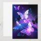 Black background with glowing night butterflies. Night butterflies. Design with butterflies.
