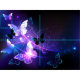 Black background with glowing night butterflies. Night butterflies. Design with butterflies.