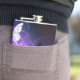 The flask itself is fine. It’s a cheap flask, obviously bought in bulk, however am prepared to overlook that. Given that it is a personalized item, I would have liked to have seen gift boxing instead of the generic packaging. Terrible printing, and/or quality. It’s a cheap, tacky vinyl. It is not cut straight and is also applied in a way that it is overhanging the bottom, causing the glue to catch on items and it will eventually roll and tear, damaging the wrap.