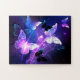 Black background with glowing night butterflies. Night butterflies. Design with butterflies.