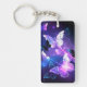Black background with glowing night butterflies. Night butterflies. Design with butterflies.