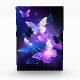 Black background with glowing night butterflies. Night butterflies. Design with butterflies.