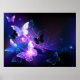 Black background with glowing night butterflies. Night butterflies. Design with butterflies.