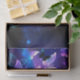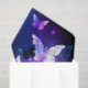 Black background with glowing night butterflies. Night butterflies. Design with butterflies.