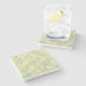 The coasters are gorgeous, a quality feel and heavy weight. They look like a precious archeological find. A rustic stone juxtaposed with a modern floral black and white print. I like the way the print goes slightly imperfect on the cut stone edges giving them a kind-of natural beauty.
