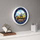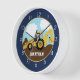 This clock features a realistic backhoe illustration with a navy blue border, white numbers, and an inner yellow border colour.