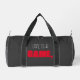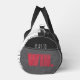 The coolest Duffle Bag with "life is a GAME, play to WIN." logo throughout. abstract keyboard print on one side. end of bag with logo "play to win."