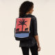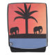 This backpack is designed with my depiction of two elephants and a palm tree silhouetted against an orange sunset sky.