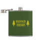 The flask itself is fine. It’s a cheap flask, obviously bought in bulk, however am prepared to overlook that. Given that it is a personalized item, I would have liked to have seen gift boxing instead of the generic packaging. Terrible printing, and/or quality. It’s a cheap, tacky vinyl. It is not cut straight and is also applied in a way that it is overhanging the bottom, causing the glue to catch on items and it will eventually roll and tear, damaging the wrap.