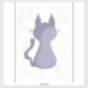 Drawing of a cat with its back to us and doodles of other cats in the background