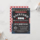Backyard barbecue birthday invitation featuring chalk board design with patio light strings. Personalise with your own party information by selecting "Personalise" and then "Click to Customise Further" for advanced editing.