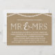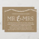 This pretty, rustic chic wedding anniversary party invite features "Mr. & Mrs." written in vintage typography, a glowing string of heart-shaped lights, and a kraft paper style background.
