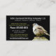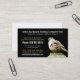 This eye catching business card makes a great first impression for any wild bird business supplying birdhouses, birdfeeders, or bird seed for wild outdoor birds or supplying the hobby birdwatchers. Suitable also for rescues or rehabilitation programs. Black background, with a nice photographic portrait of a song sparrow (identified as a white crowned sparrow) and easy to read text in white and matching yellow green colour similar to the moss or mildew discoloring the rural fence post top on which the bird sits. Multiple fully customisable text fields so you can completely personalise it with your own professional or personal contact information. Photo taken in southern British Columbia April 2010.