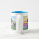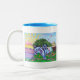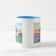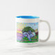 Backyard Easter Egg Hunt mug with our fun and colourful art of a geometrically decorated blue Easter bunny hopping among hidden decorated Easter Eggs in a grassy yard with a bunch of flowers, a brick wall and a sunny springtime sky. Our original animal art mug is a fun and playful way to have your coffee, tea, or hot cocoa on a cool spring morning. Our whimsical Easter mug was digitally painted by our talented children's book illustrator, Traci Van Wagoner, and makes a great gift for anyone who loves bunnies, rabbits, Easter eggs, decorative eggs, Easter, spring, and colourful artwork. Fill this adorable Easter bunny mug with Easter candy and give it as a fun Easter gift. Spring has sprung. Have a happy hoppy Easter! Hop on in to our store and see where else this adorable bunny pops up!