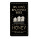 Black and gold honey label with backyard hives and little bees illustration. Customise this label with your apiary name, honey descriptors, address and honey net weight. You can even add in your latitude and longitude coordinates! Dotted border. This label works great for smaller honey jars, such as a 12 oz hexagon jar.