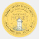 Central design features an illustration of a small backyard hive on a bright yellow background. HONEY is written in a chiseled metallic gold font. Text is printed in taupe. Personalise with your apiary name, address and honey description (raw, hand bottled, single source etc.). Also include your honey net weight. Common honey net weight conversions: 8oz (227g), 12oz (340g), 16oz (454g), 32oz (907g), 5lb (2.27kg).