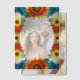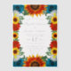 Elegant and colourful floral design for a backyard summer event. Features teal blue roses, white daisies, red wildflowers and sunflowers
