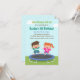 A cheerful and colourful kids birthday party invitation that has cute kids, a boy and a girl bouncing happily on a trampoline in the backyard under the clear sky. On the reverse page is a white polka dots pattern. A simple but fun birthday party activity for kids that will keep them occupied for hours. Personalise with your party details in the space provided.
