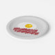Bacon and eggs breakfast paper party plates. Cute design for bacon lover. Personalise with text optionally. Grey or custom colour background. Fun for Birthday party, diner, event, restaurant, BBQ, cooking class etc.