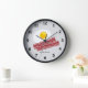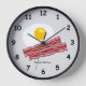 Bacon and eggs custom colour kitchen wall clock. Cute breakfast food design with two strips of bacon meat. Personalise with custom name or funny quote. Cool Birthday gift for meat lover, friends, family etc.