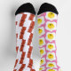 Bacon and Eggs Fun Mismatched pair of socks from Ricaso - one sock features bacon, the other sock displays egg pattern. Fun novelty pattered socks.